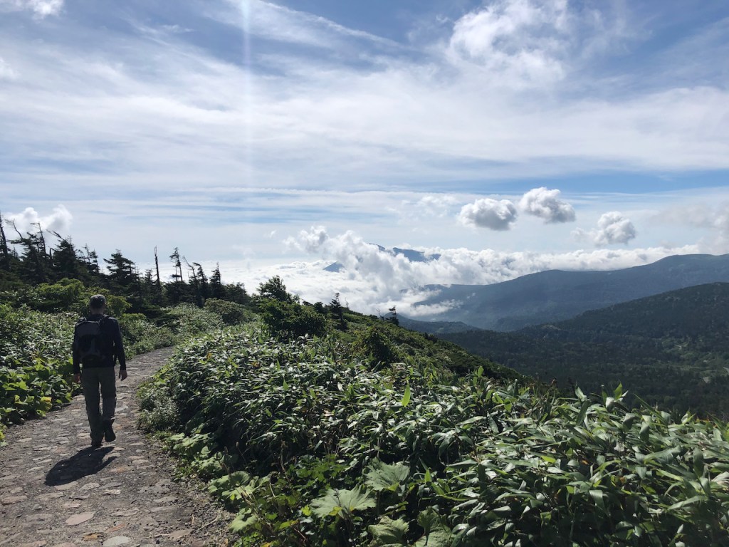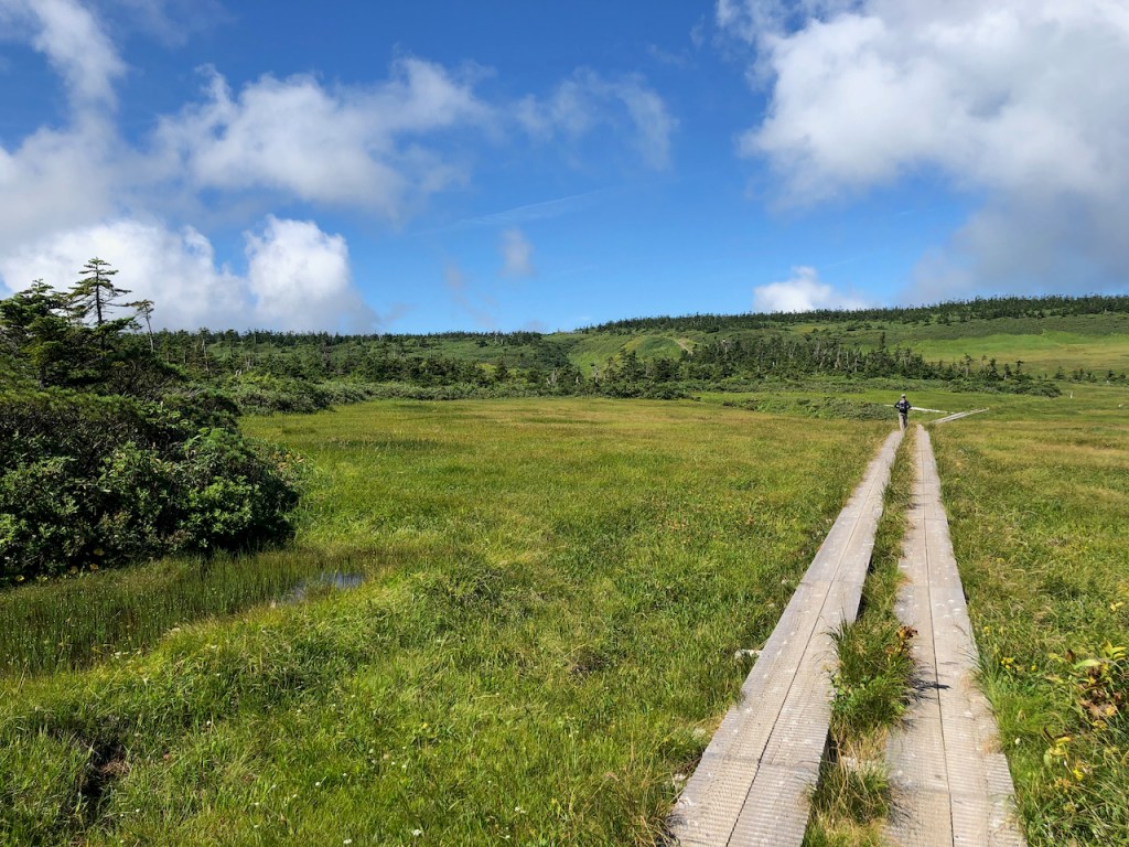 Der Hachimantai 八幡平 in der Provinz Iwate ist der wohl am einfachsten zu besteigende Hyakumeizan, wenn man mit dem Auto anreist. Der Parkplatz ist nur gut 100 Meter vor dem Gipfel und schon beim Aussteigen aus dem Auto bietet sich ein wunderbarer Anblick auf die Umgebung, inklusive dem Iwate-san. Die “Besteigung” des Hachimantai ist daher eher weiniger anstrengend und man findet sich schnell auf einem Rundgang ueber das sehr schoene Hochplateau.