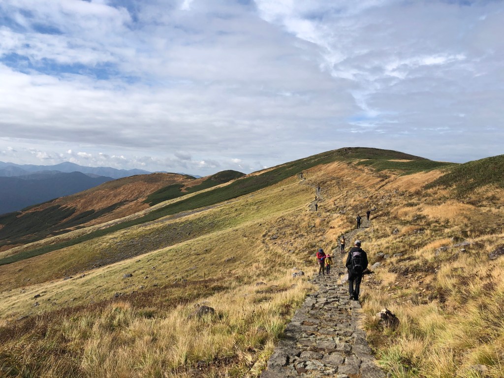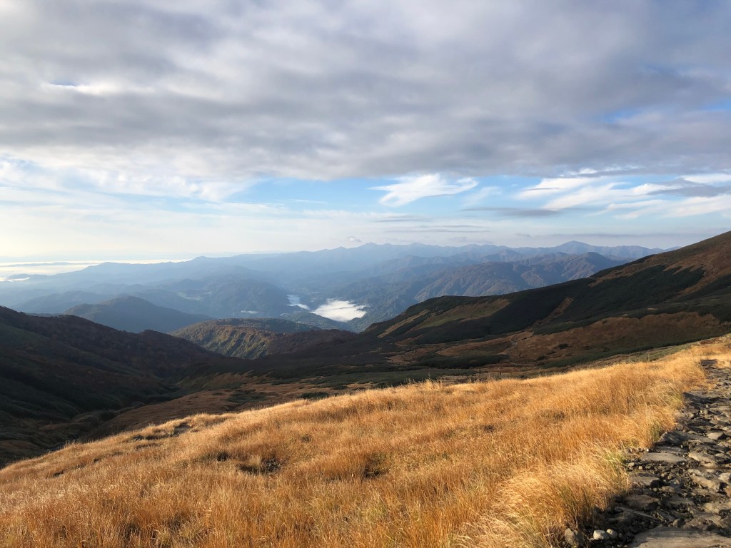 Netter Oktober Hike auf den Gassan. Der Berg ist ein beliebter Pilgerort in Japan, daher wuerde ich empfehlen ihn zu bestaeigen nachdem der Schrein oben auf dem Gipfel nicht mehr offen hat. Ich bin im Oktober 2020 hoch, als die Blaetter schon angefangen haben ihre Farbe zu wechseln. Selbst in dieser Zeit (der Schrein war schon geschlossen) und der beginnenden Kuehle oben auf dem Gipfel, waren noch sehr viele Leute unterwegs. Die meisten nehmen die Route ueber den Skilift, welcher erst um 8 Uhr morgens oeffne. Wenn moeglich wuerde ich daher empfehlen schon gegen spaetestens 6am morgens zu starten, um die Massen zu vermeiden. Die Gipfelmarkierung ist uebrigens nicht im Tempel, sondern kurz dahinter auf einer kleinen Anhoehe.