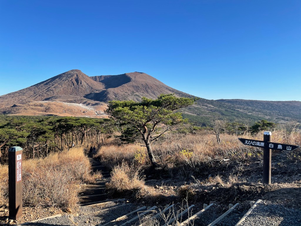 Der Shiratori-yama 白鳥山 liegt unweit vom bereuehmteren Karakuni-dake 韓国岳 im selben Kirishima Gebirge. Man kann den Shiratori-yama ganz bequem vom Ebino Plateau えびの高原 erreichen und der Gipfel ist in weniger als einer Stunde zu erreichen. Wenn man auf dem Ebino Hochgebirge parkt und von dort aus frueh genug den Karakuni-dake besteigt, wuere ich empfehlen den Shiratori-yama im Anschluss noch den Shiratori-yama zu besteigen. Die Sicht auf den Karakuni-dake mit den drei Seen (Byakushi-ike 白紫池, Rokkannonmi-ike 六観音御池, sowie den Fudo-ike 不動池) im Vordergrund ist wirklich gut. Der Berg liegt auf einem rund 5km rundweg um die drei Seen. Im November 2020 war allerdings die letzte Strecke ab dem Fudo-ike gesperrt, so dass man die Runde nicht komplett laufen konnte und gezwungen ist den gleichen Weg wieder zurueck zum Parkplatz zu laufen.