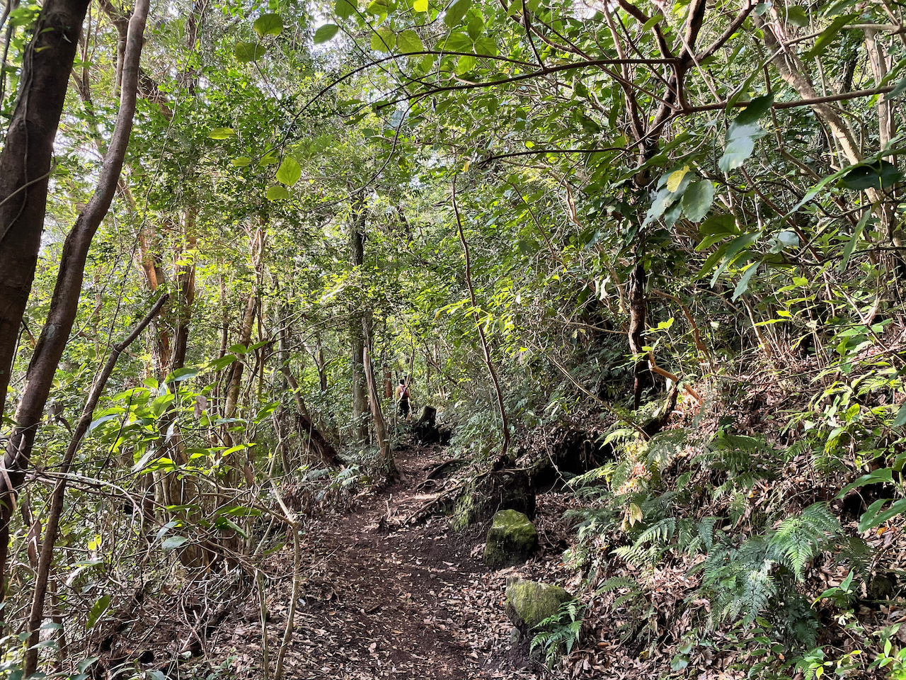 Trotz seiner “kleineren” Statur sticht der Kaimon-dake sehr stark aus der Landschaft als einzige hoehere Erhebung am suedlichsten Zipfel Kyushus. Direkt am Wasser gelegen, ist das Klima entsprechend subtropisch und auch Ende November war es noch reichlich schwuel beim Aufstieg durch den Wald.