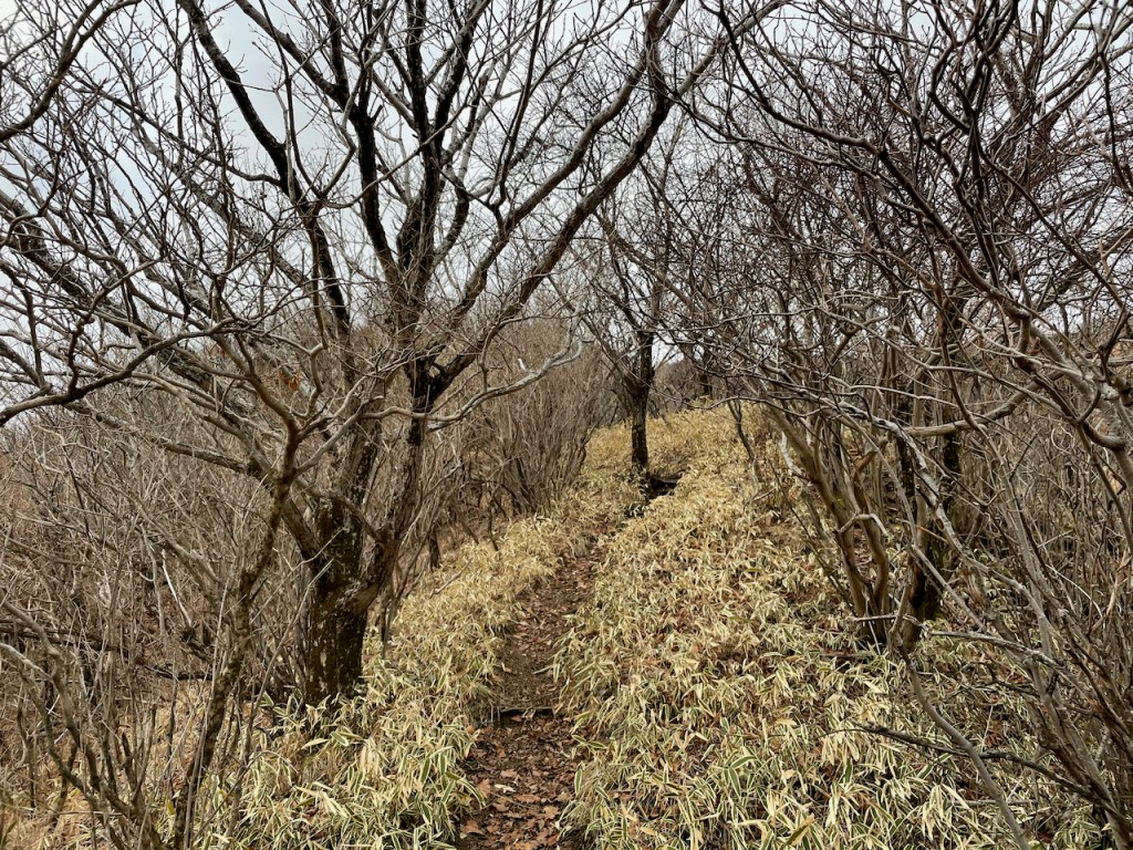 Leider ist die eigentliche Spitze des 根子岳 gesperrt, weil es zu gefaehlich ist aber man kann bis zur oestlichen Spitze Nekodake-Toho 根子岳東峰 heran. Es gibt mindestens 3 Wege hoch zum Nekodake-toho. Die beliebtesten sind vom Oto-one-tozanguchi 大戸尾根登山口 sowie vom Tsurui-one-tozanguchi 釣井尾根登山口 auf der anderen Seite. Fuer beide Hikes sollte man bis zu 3.5h Hin und Zurueck einplanen. Da wir unter Zeitdruck waren an dem Tag und schlechtes Wetter vorausgesagt wurde fuer den Nachmittag, entschieden wir uns eine etwas weniger bekannte, aber wesentlich kuerzere Route mit gut 2h, zu nehmen. Diese Route beginnt am Otonokuchitogenoboru-yamaguchi 大戸ノ口峠登山口駐車場 an einem kleinen Parkplatz in der Naehe eines Dammes, den man mit dem Auto von der Ost-Seite des Berges erreichen kann. Google Maps hat den Weg nicht auf der Karte, aber man kommt mit dem Auto via einem kleinen Seitenweg relativ weit an den Berg ran und muss nur dann noch die letzten 300-400m Hoehenunterschied an einer Route mit starker Steigung ueberwinden. Oben angekommen hat man sehr schoene Sicht auf den eigentlichen Hochpunkt des Berges, den Nekodake-tengu-mine 根子岳天狗峰.