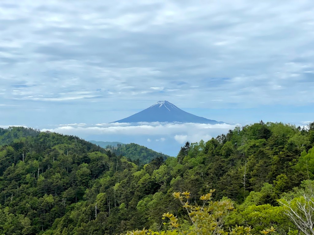Moechte man zum Koganezawa-yama, empfehle ich an der Station Koyadaira 小屋平 aussteigen (Buspreis bei 970Yen von Kai Yamato Station, Stand 6/2021), und von dort den Anstieg Richtung Ishimaru-Toge 石丸峠 nehmen. Koyadaira liegt bereits auf ueber 1500m hoehe so dass man von dort nur noch das letzte Viertel an Anstieg vor sich hat. In ca 1h ist man dann auch schon oben am Bergkamm und kann sich zwischen Links (Richtung Daibosatsu-rei) sowie Rechts (Richtung Koganezawa-yama) entscheiden. Entlang des Bergkammes nach rechts wird man vom Blick auf den Fuji weitgehend begleitet. Nach kurzer Zeit kommt man an einen Berg, dessen Spitze man leicht uebersehen kann: den Tengudana-yama 天狗棚山 mti immerhin stolzen 1957m. Geht man den Bergkamm weiter geradeaus dann trifft man relativ bald auch auf den Koganezawa-yama, der einen sehr schoenen offenen Blick auf den Fuji gewaehrt. Von der Spitze geht es dann ein wenig abwaerts bis man in ca 30 Minuten auch den Berg mit dem laengsten Namen in Japan erreicht: den Ushiokunogangaharasuri-yama 牛奥ノ雁ヶ腹摺山.