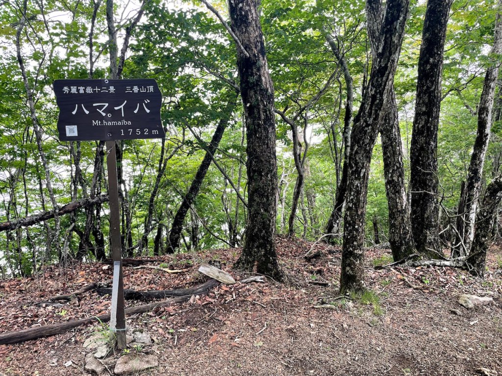 Interessant ist weiterhin die Schreibweise des Berges. Waehrend er ueberall nur mit der Katakana Version ハマイバ丸 auftaucht, steht auf dem Gipfel auch ein Pfahl mit der Kanji Version: 破魔射場丸. Die Bedeutung des Bergnamens kommt anscheinend von dem Ort, an dem frueher Bewohner der Stadt Maki 真木 Hamaya 破魔矢(dekorative Pfeile) zeremoniell zum Neujahr aufgestellt wurden (射礼).