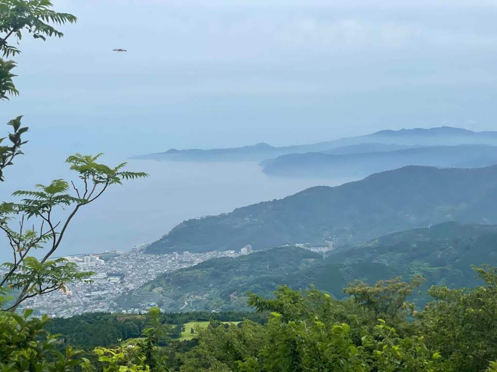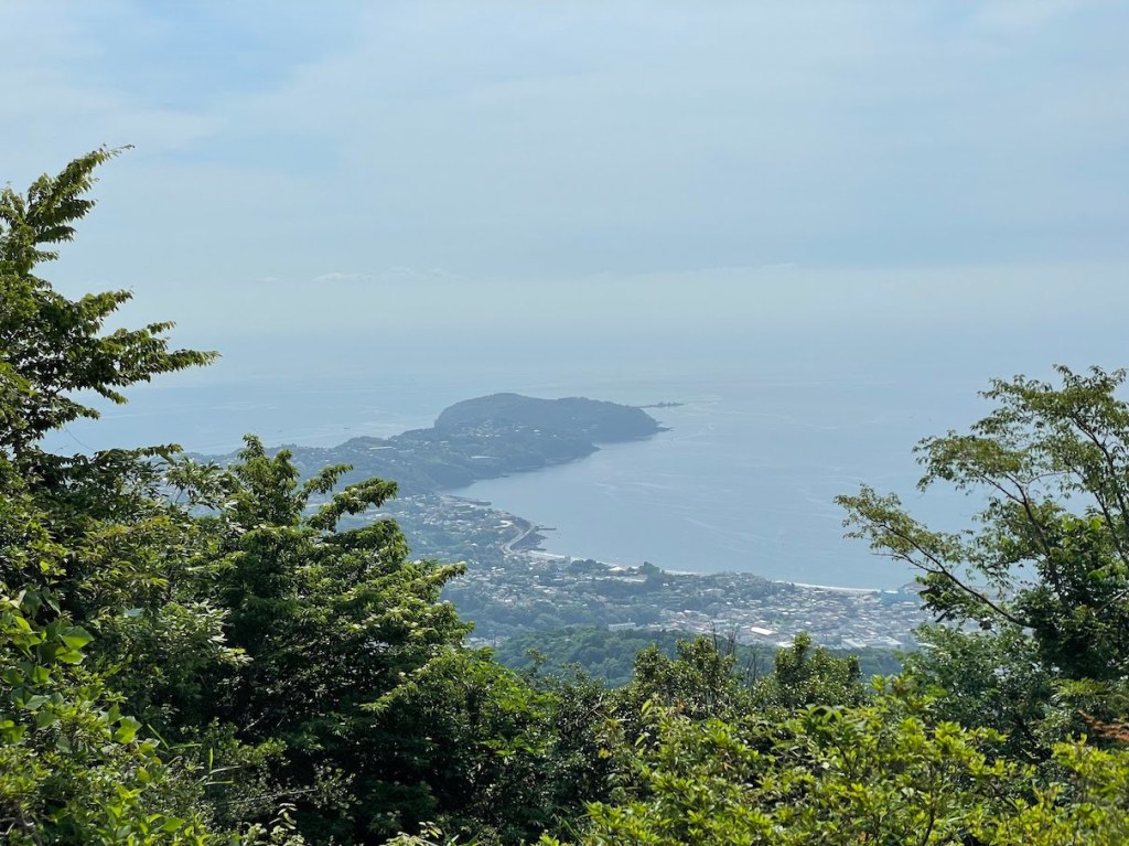 Der eigentliche Gipfel des Makuyama ist sehr unspektakulaer. Nur in eine Richtung frei und es steht wirklich nur das Gipfelschild. Wenn man moechte, kann man auch einen 800m Rundgang um den Gipfel ein weniger weiter unten machen. Ich bin den Rundgagng gegangen aber es gibt dort leider keine bessere Sicht oder aehnliches. Hat man genug vom Maku-yama gesehen, kann man schliesslich den Wanderweg weiter zum Nango-yama 南郷山folgen. Auf halbem Weg passiert man Jikan Teich (自鑑水) mittel im Wald bis man nach kurzer Zeit schon auf dem Nango-yama ankommt. Die Spitze des Nango-yama ist auch weniger interessant, allerdings hat man beim Abstieg einer gute Sicht auf die Stadt, inklusive der umliegenden Bucht. An guten Tagen sollte man bis nach Izu-Oshima 伊豆大島 schauen koennen. Der Abstieg vom Nango-yama ist ziemlich unkompliziert, und fuehrt an einem Golfplatz entlang. Je weiter man ins Tal kommt, desto mehr Asphalt hat man under dem Fuessen und irgendwann kommt es einem vor als renne man ne ganze Weile den Asphalt hinunter. Rauskommen wird man am Goro Schrein 五郎神社, von wo es nicht mehr weit bus zum Fluss ist ist, der beide Berge (Shiro-yama und Maku-yama) voneinander trennt. Von dort aus dann geht es links wieder Richtung Yugawara Bahnhof. Fuer die gesamte Tour wuerde ich 5-6h einplanen.