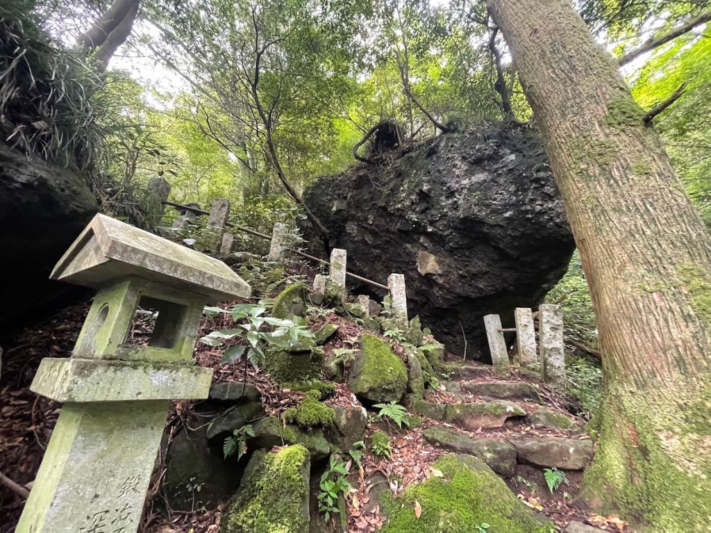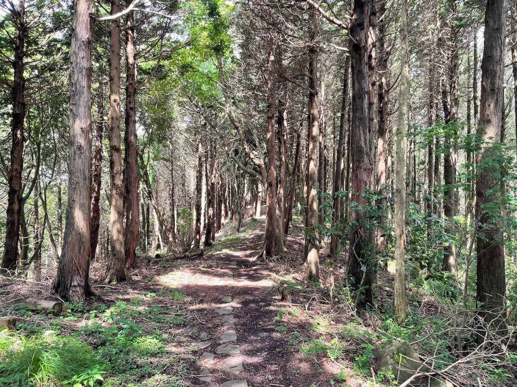 Vom Shiro-yama kann an weiter in Richtung Shitodo Hoehle しとどの窟 absteigen. Kurz vor der Hoehle kommt man an eine Strasse an einem Pass wo anscheinend ein beliebter Biker Parkplatz ist (als ich dort ankam ist gerade eine ganze Biker Gang angekommen, samt laut groehlender Motoren). Am Pass angekommen geht es links halb zurueck wieder weiter. Durch den Tunnel dann geht es direkt auf der rechten Seite Richtung Shitodo Hoehle しとどの窟. Der weg fuehrt direkt dort lang, aber man kann auch einen kleine Abstecher zu besagter Hoehle machen, was ich nur jedem empfehlen kann. Besonders an einem schwuelen Sommertag (wie es an dem Tag war wo ich dort lang bin) spendet die Hoehle ein willkommendes Mass an Kuehle und Feuchtigkeit. Die Hoehle ist auch relativ fotogen mit dem heruntertropfenden Wasser sowie den vielen buddhistischen Steinlaternen im Hintergrund. Folgt man dem Hauptpfad dann weiter nach unten kommt man nach nciht allzu langer Zeit an einer Strasse raus, die man Rechts weiterlaeuft. Ab hier laeuft man im Tal zwischen Shiro-yama sowie Maku-yama.