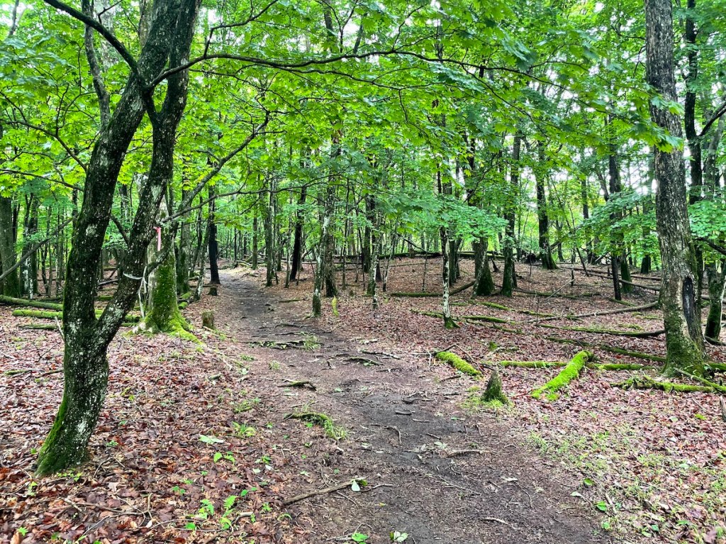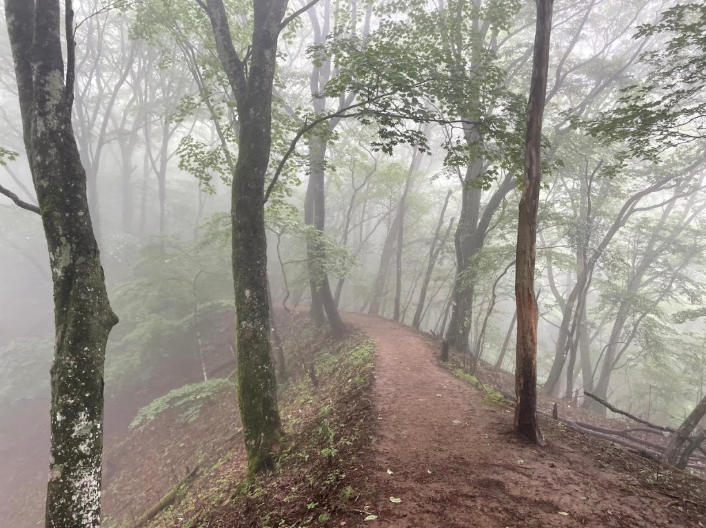 Der Wanderweg nach oben ist nicht sehr schwierig und auch fuer Anfaenger geeignet. Der wohl beliebteste Weg started am Uchiyama Pass 内山峠, wo man bequem mit dem Auto hinkommt (Parkplatz ist nicht allzu gross aber einige Autos passen hin). Von dort aus sind es nur knappe 3km bis zum Gipfel. Der Weg ist sehr gut ausgebaut und es gibt nur vereinzelt Klettereinlagen mit Seil/Ketten. An nassen Tagen sollte man daher auch hier etwas vorsichtig sein. Nach etwas mehr als einer Stunde wandern kommt man zum Tomo-iwa, welches nicht die Spitze ist aber eine sehr gute Aussicht bieten soll (leider nicht am Tag wo wir dort waren). Ungefaehr 30 minuten weiter schliesslich kommt man an eine Kreuzung, die den Weg zum Kyouzuka-yama 経塚山 aufzeigen, welches den hoechsten Punkt auf dem Atafune-yama markiert.