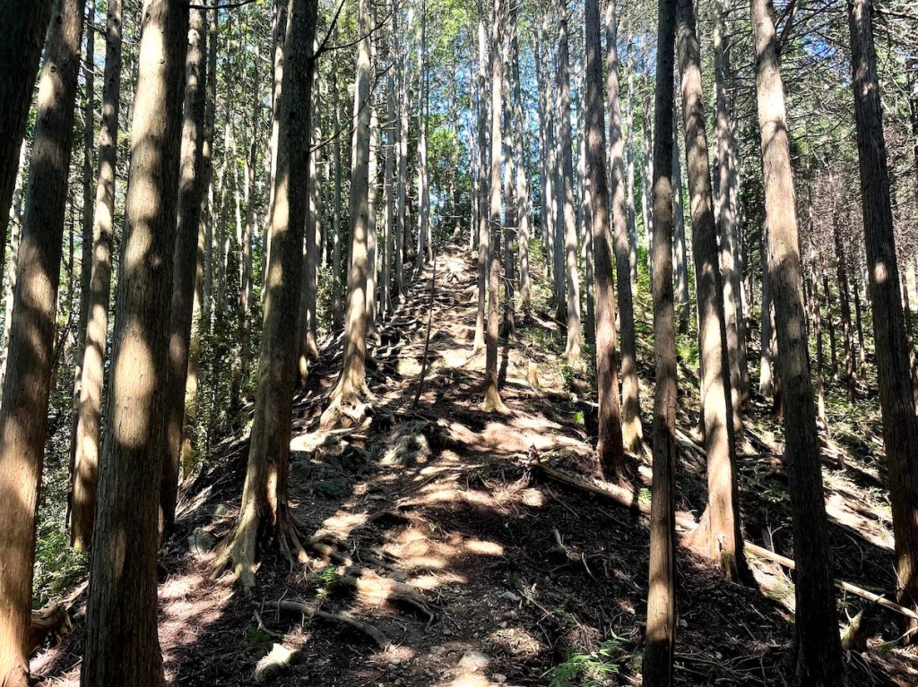 Als Teil der sogenannten Hannou Alps 飯能アルプス liegt so ziemlich in der Mitte zwischen dem Izugatake und dem Tenran-zan 天覧山 der Tenkaku-san 天覚山. (Ich glaube der Begriff Alps ist in Japan allgegenwaertig und wird fuer alles was eine Aneinanderreihung von Bergen/Huegeln darstellt benutzt.) Waehrend der Berg nicht wirklich ein Meizan ist, hatte ich mich an einem heissen Sommermorgen entschlossen, das Stueck zwischen Higashi-Agano und Agano einmal abzugrasen. In der schwuelen Sommerhitze in Japan muss man echt aufpassen und ich empfehle jedem es nicht zu uebertreiben. An Tagen mit fast 35 Grad und maximaler Luftfeuchte wuerde ich maximal ein Halbtages-hike machen, das heisst fruehstmoeglichst los und versuchen vor der erdrueckenden Mittagshitze schon wieder auf dem Rueckweg sein. Der Tenkaku-yama eignete sich dabei sehr gut mit seinen nur ca. 2.5h von Bahnhof zu Bahnhof.