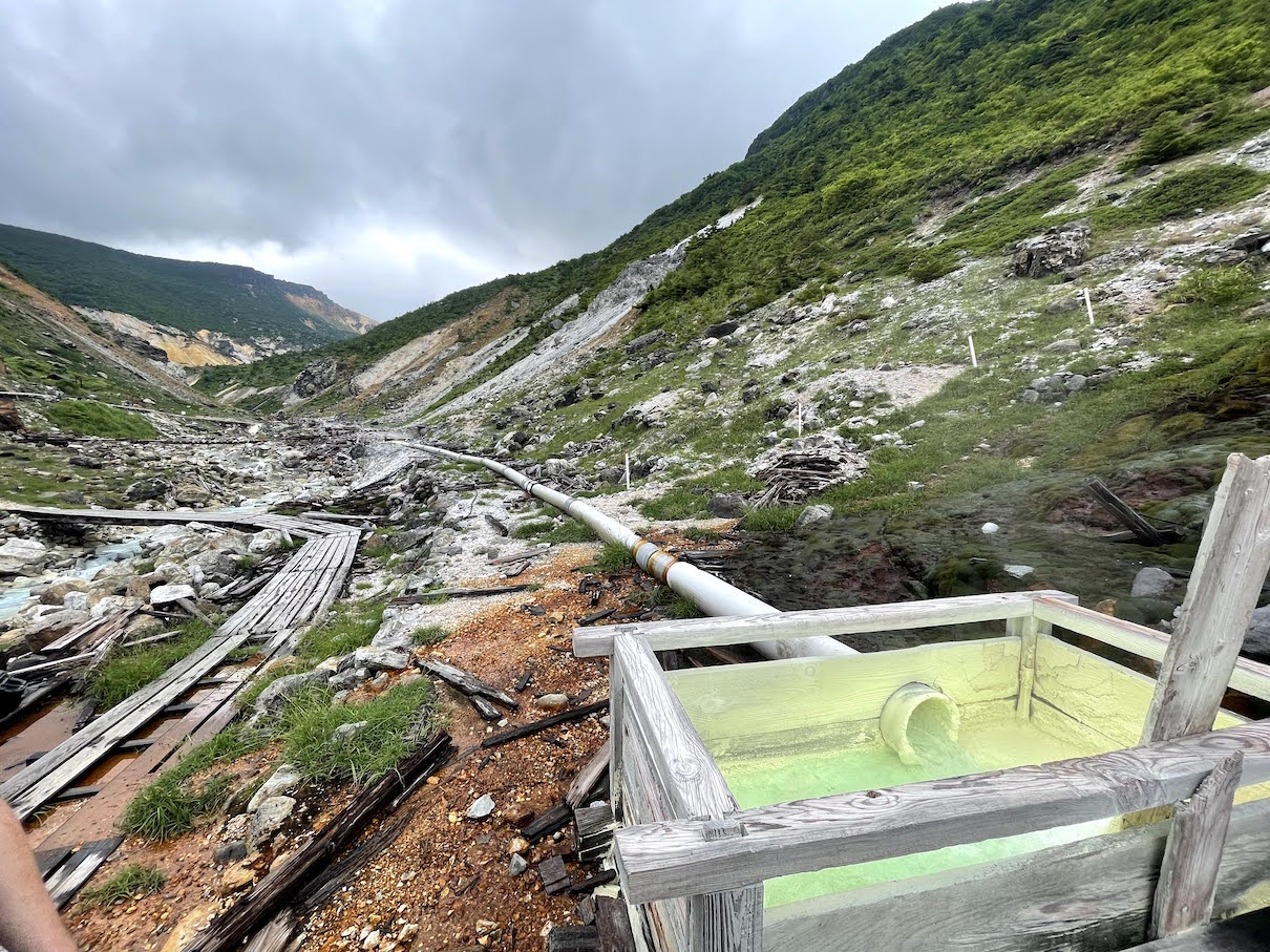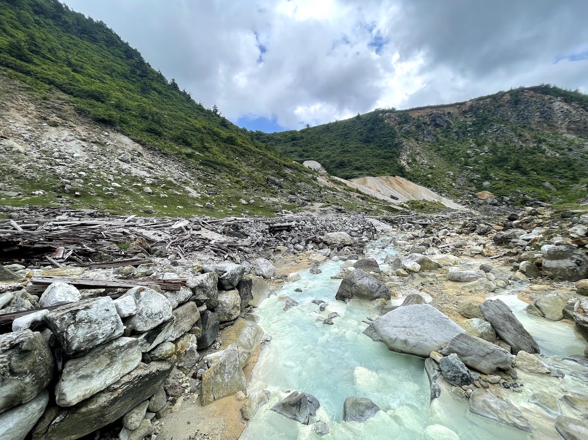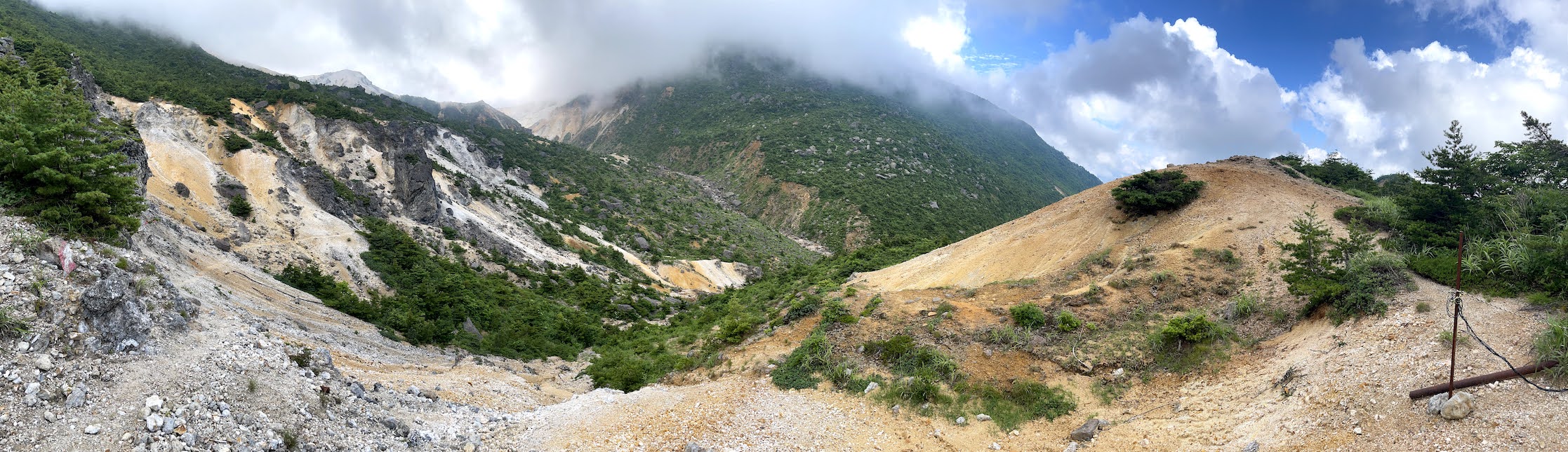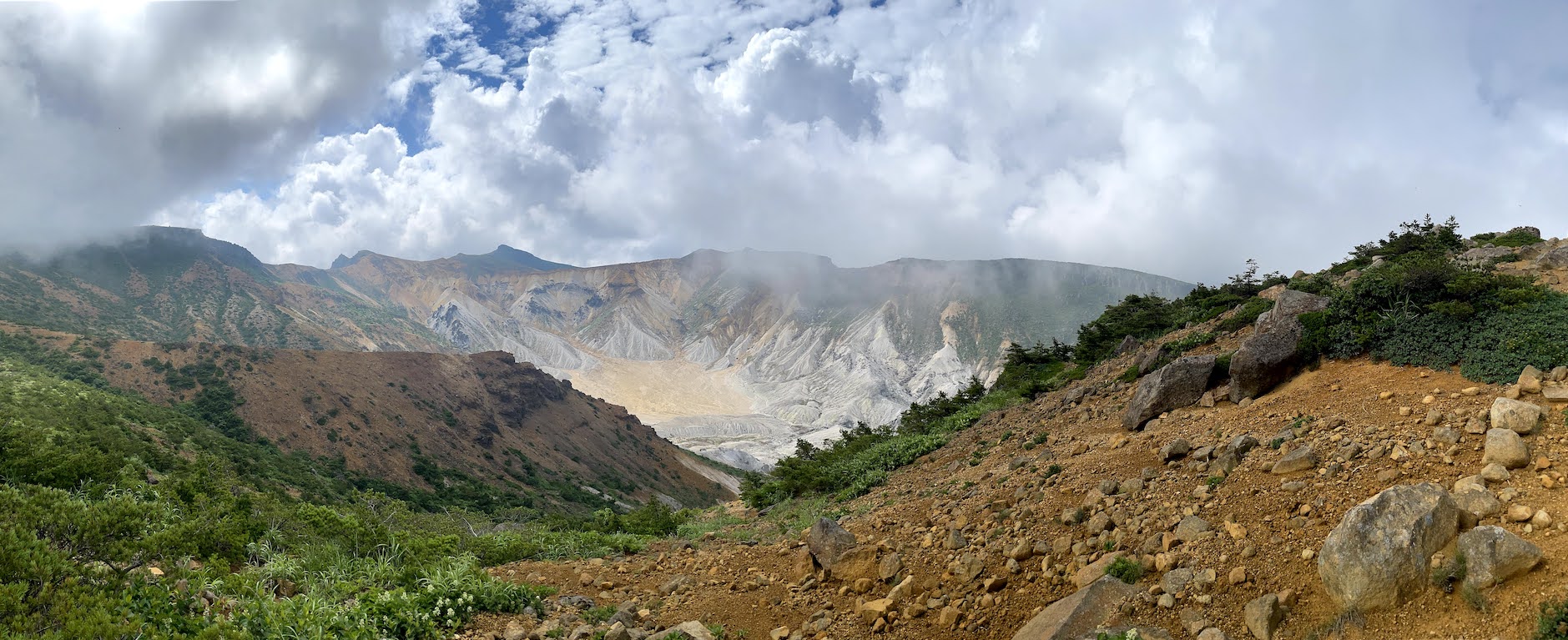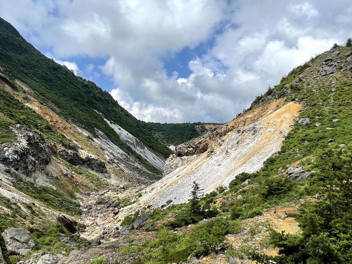 Alles in allem ein mittlerer Hike. Besteigt man zunaechst noch durch dichte Waelder, erreicht man nach 1-1.5h den Vulkankrater, an dem sich die Landschaft stark veraendert und man durch die fuer Vulkane typische marsaehnliche Landschaft wandert. An guten Tagen hat man eine wunderbare Aussicht in das Tal sowie in den Adatara-yama Krater.