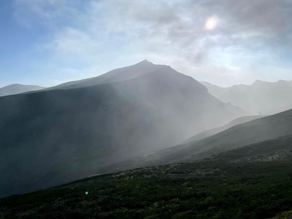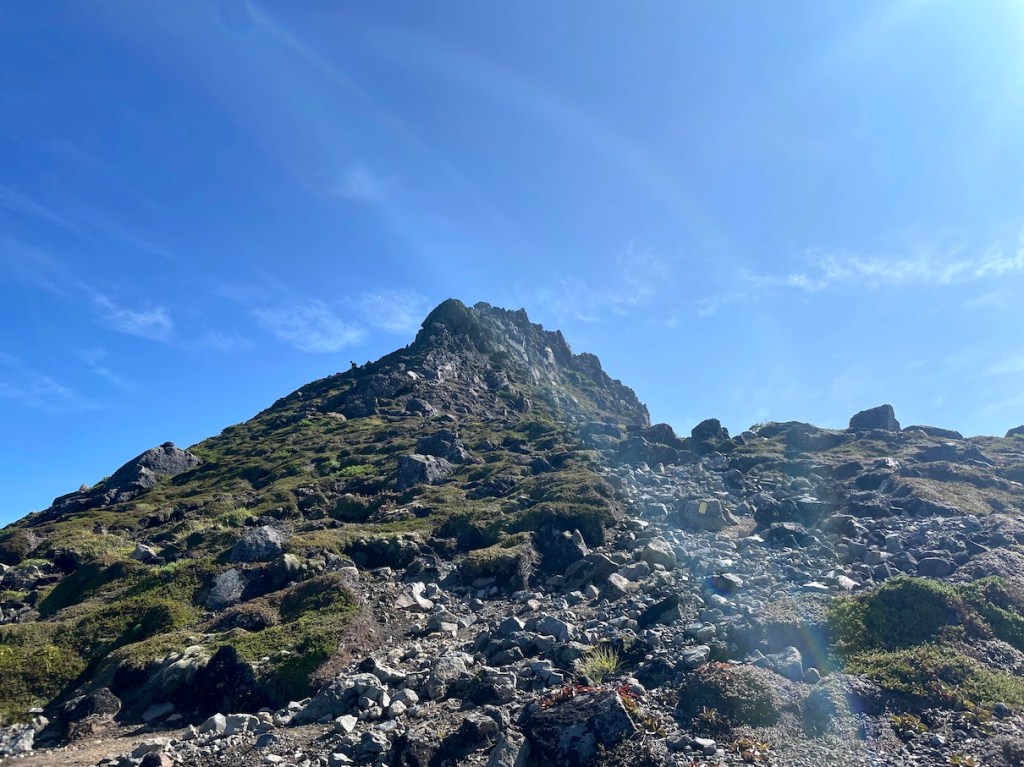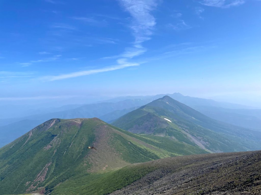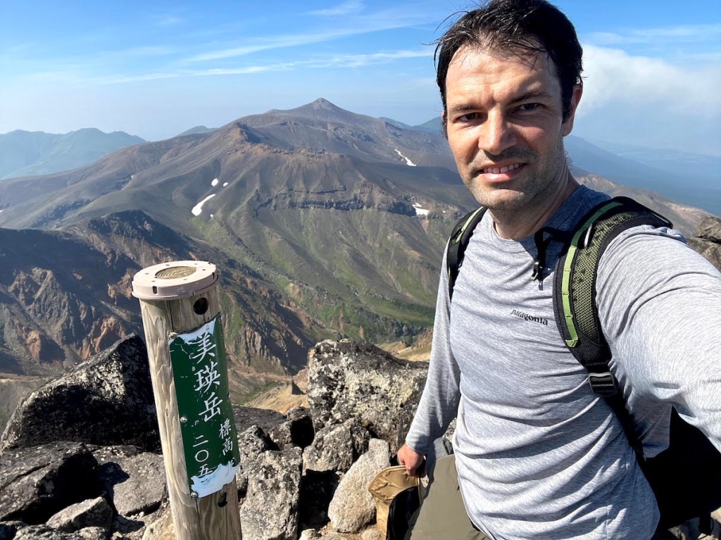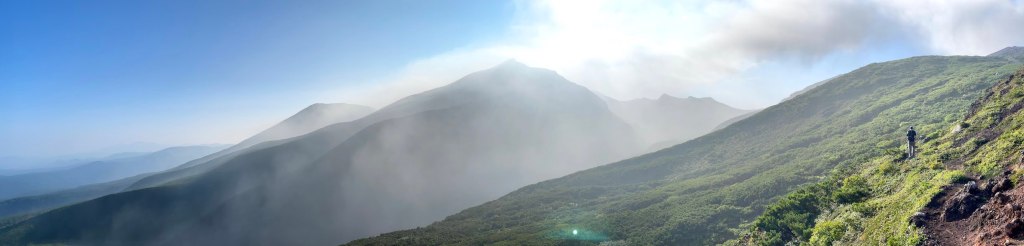 Biei-dake gesehen vom Beginn des Wanderweges, dem Bogakudai 望岳台.Zunaechst geht es richtung Tokachi-dake 十勝岳An dieser Kreuzung links zum Biei-dake 美瑛岳.Frueh morgens zeigen sich Berge meist von ihrer mystischen Seite.Morgendunst in den Bergen.Charakteristisch wie hier liegt teilweise noch schnee auf dem Berg, und das im Hochsommer (August) .Ueber diesen FlussDann ein paar steilere Einlagen.Oben sieht man schon den Gipfel.Der Gipfel des Biei-dake.Tokachi-dake gesehen von einer Stelle kurz vor dem Gipfel des Biei-dake.Der Gipfel des Biei-dake.Gipfel-Schild auf dem Biei-dake.Provisorische Beweisphoto.In die andere Richtung erblickt man den etwas kleineren Biei-Fuji.