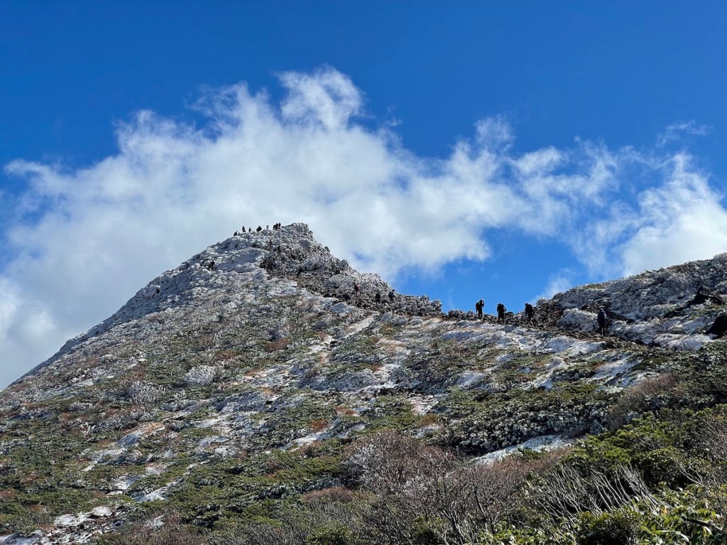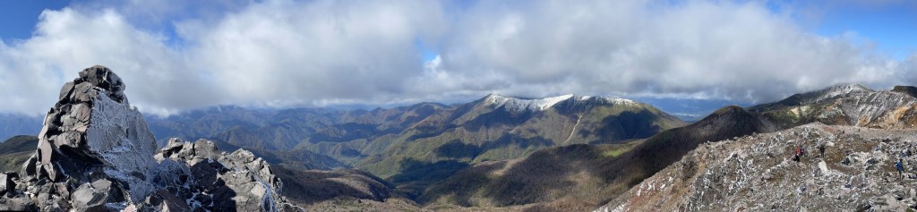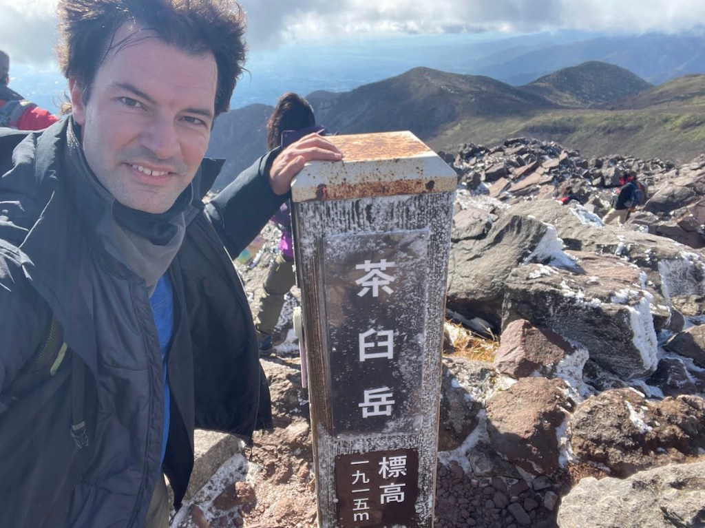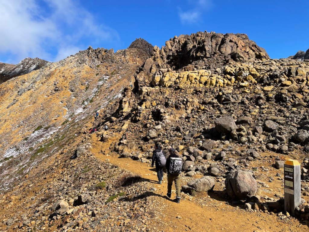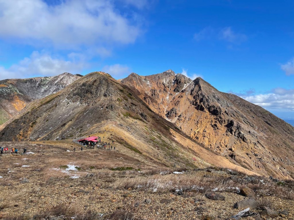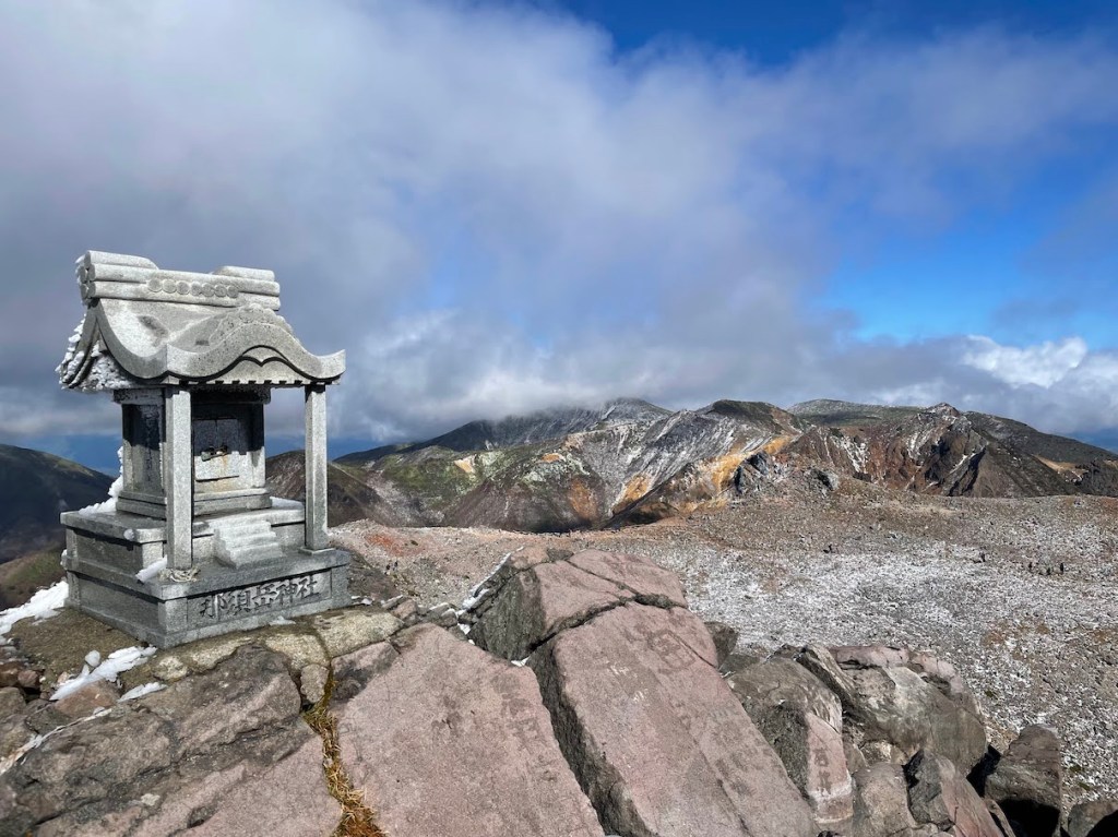 Die wohl einfachste Route nach oben startet an der Nasu Ropeway Station 那須ロープウェイ山麓駅. Dort ist auch einer der groesseren Parkplaetze in der Naehe (ein andere ist ein bisschen weiter hinten am Trailhead und ein anderer ein wenig weiter unten, aber in Laufreichweite). Von dort kann man wahlweise mit der Ropeway in die Naehe des Gipfels oder zu Fuss hoch. Da ich unter Zeitdruck stand, habe ich die Ropeway genommen, aber ich muss sagen, dass dies nicht unbedingt noetig ist. Der Weg nach oben ist nicht so weit (ca. 1h) und auch nicht so schwer, und die Ropeway faehrt auch nur 5 Minuten und ist dafur relativ teuer (1800 Yen Round Trip). Oben angekommen ist es dann nurnoch ca 20 Minuten zu Fuss zum Gipfel. Da es sich um ein Vulkankrater handelt, ist der Gipfel an sich sehr felsig, also sollte man bei Schnee und Regen etwas aufpassen. Als ich dort hoch bin war es Ende Oktober und oben lag bereits Schnee und durch die Winde war es auch sehr kalt obwohl es im Tal durch das gute Wetter relativ mild war. Man sollte also wie immer auf alles gefasst sein. Oben findet man dann ein Torii 鳥居, den Nasudake Gipfelschrein 那須岳神社, sowie die Gipfelmarkierung den Chausu-dake 茶臼岳. Die Aussicht von oben ist phaenomenal. Danach kann man einmal den Krater umrunden und weiter Richtung Asahi-dake 朝日岳 wandern. Hierzu muss man zunaechst wieder etwas absteigen, an einem Pass und einer Berghuette vorbei, und dann auf der anderen Seite wieder hoch. Die Landschaft ist typisch Vulkan mit schoen farbigem Sand und felsigen Klippen. Es gibt eine kurze Klettereinlage mit Eisenketten zur Hilfe aber nichts schwieriges. Vom Asahi-dake hat man eine tolle Sicht auf den Chausu-dake. Danach kann man entweder den Weg wieder zurueck, oder falls noch Zeit besteht, weiter bis zum Sanbonyari-dake und zurueck.