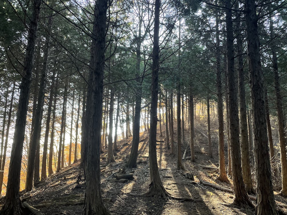 Der einfachste Zugang ist von der Station Sasago 笹子駅 auf der JR Chuo Main Line JR中央本線, ca. 2.5h von Tokyo entfernt. Ich war bereits mehrmals schon and dieser Station um die umliegenden Berge zu besteigen. Der Honjagamaru ist wohl der letzte Berg fuer mich den man von dieser Station erreichen kann. Und so ging es einmal mehr mit der ersten Bahn frueh morgens an einem sonnigen November-Sonntag in Richtung Yamanashi Prefektur. Gegen 7 Uhr morgens an der Station angekommen, ging es auch schon direkt los. Der Weg fuehrt zunaechst rechts entlang ein wenig an den Schienen entlang, bis ein kleines Schild den Eingang des Wanderpfades auf der linken Seite markiert. Danach geht es relativ steil rechts ab (den Weg habe ich im Vorjahr zunaechst nicht gesehen und bin geradeaus einen anderen Weg gelaufen). Ab hier geht es fuer eine ganze Weile sehr Steil nach oben. Das mag ein wenig anstrengend sein, aber dafuer geht es schnell nach oben. Nach einer Weiel erreicht man den ersten Gipfel des etwas unbekannteren Niwahora-yama 庭洞山 auf 1000m.