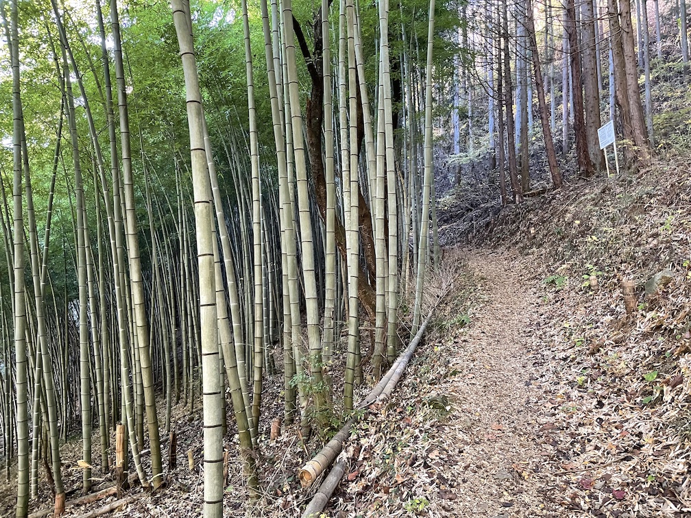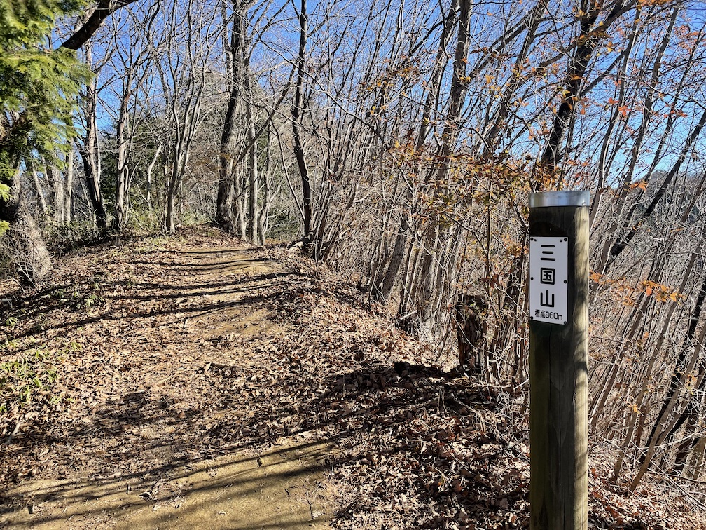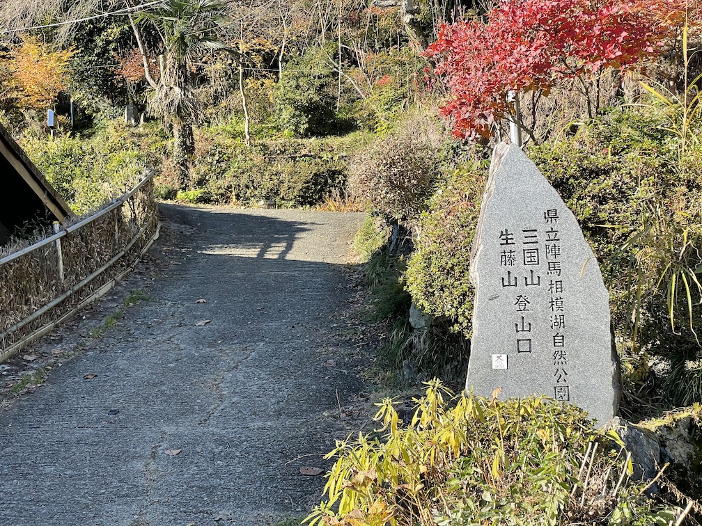 Sobald man im Bus ist, fahrt man bis zur Station Kamazawa Iriguchi 鎌沢入口. Dort ausgestiegen findet man bereits die Wegweiser vor. Fuer den Shoutou-san geht man zunaechst rechts ab, bis es links der Strasse ein wenig bergab in einer Gegend mit ein paar Haeusern bergab geht. Folgt man der Strasse entlang mehrerer Kurven und leichten Steigungen, so erreicht man irgendwann den eigentlichen Eingang zum Wanderweg, markiert duch ein massiven Stein mit Gravur. Von dort aus geht es dann relativ gut ausgeschildert durch einen Wald, vorbei an einem Abschnitt mit Bambuswld, dann ein wenig mehr Anstieg, und schliesslich zu der Sakura Promenade 桜プロムナード. Im Fruehjahr sieht es dort bestimmt sehr nett aus, im November allerdings ist dort nichts besonderes zu sehen, bis auch den ersten freien Blick auf das Umland inklusive Fuji-san. Von dort aus ist es dann nicht mehr weit bis zum Mikuni-san 三国山.