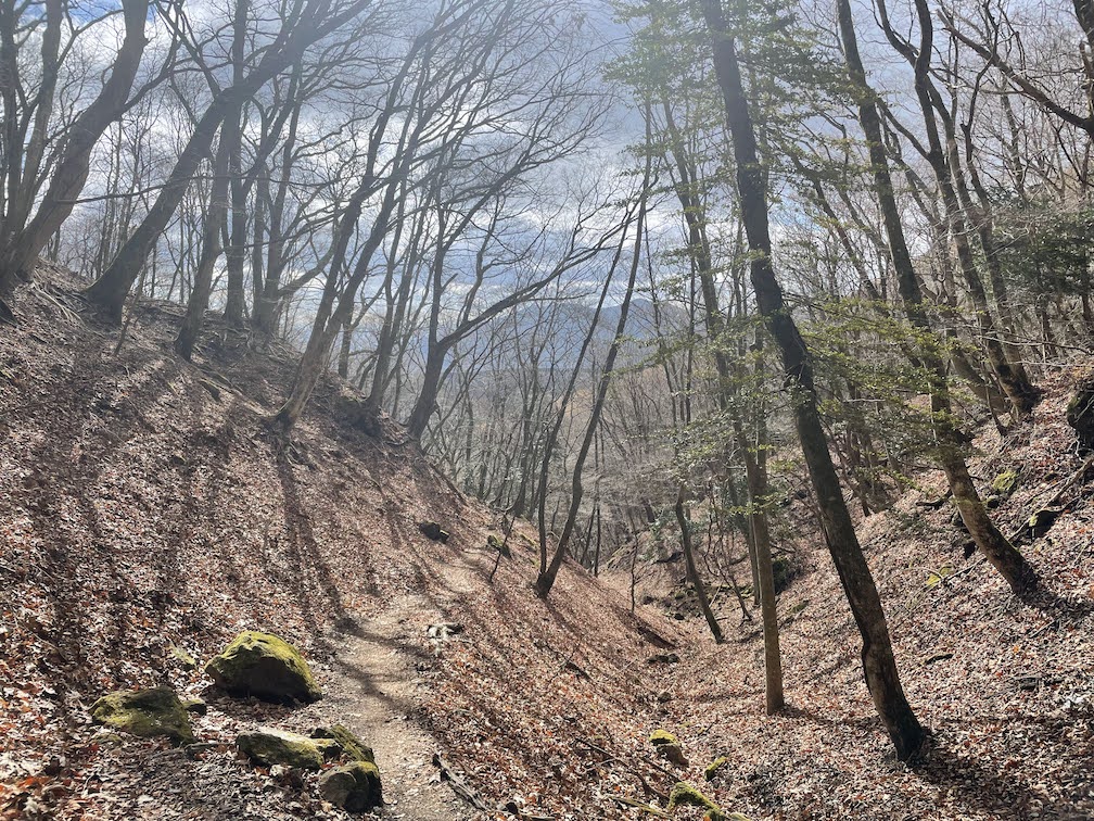 Ab hier sieht man schon ein Schild. Links entlang zur West-Spitze 西峰 (1583.5m) oder rechts entlang zur Ost-Spitze 東峰 (1580m). Die West-Spitze stellt dabei den hoechsten Punkt auf dem Vulkan dar, wenn auch nur minial hoeher als die Ost-Spitze. Ich dachte mir daher, zuerst auf die West-Spitze zu gehen. Dafuer nam ich zunaechst die linke Route und merkte relativ schnell, dass der Weg dorthin nicht so einfach ist. Es gibt massive Felsen und Stuecke wo man mehrere Meter an Eisenketten hoch muss. An diesem Tag herrschte ein sehr starker eiskalter Wind und die Ketten boten nicht viel Griff durch die kalte Temperatur, selbst nicht mit Handschuhen. Der Abschnitt wo man klettern musste war weiterhin relativ ungeschuetzt und dollte man abrutschen, geht es direkt in den Krater hinein. Schnell begriff ich, dass ich fuer eine solche Kletterpartie an diesem Tag nicht genug ausgeruestet war und entschied mich, die West-Spitze an einem anderen Tag anzugehen, vielleicht einmal im Sommer. Daher verfolgte ich den Weg zurueck zur Kreuzung und ging die Ost-Spitze hoch, welche wesentlich einfacher war, ohne grosse Klettereinlage. Man kann den Kraterrand in einem Rundgang begehen (jp. o-hachi meguri お鉢巡り) und so versuchte ich es noch von der anderen Seite, aber stiess relativ bald auf eine Stelle die ein relativ schmaler Grat war und bei den gefrorenen Temperaturen dazu noch sehr rutschig war. Wenn man Berge besteigt, muss man immer wissen was man sich aktuell zutrauen kann und wofuer man gut ausgeruestet ist. Ich hatte definitiv nicht die Kleidung dabei fuer solch ein eisiges Wetter, frostige starke Winde sowie rutschige Kletterpartien. Daher liess ich die West-Spitze sein an diesem Tag. Sicherheit geht vor. Im Zweifelsfall noch einmal wiederkommen. Der Berg wartet, Leben hat man nur eines. Leider kommen in Japan jedes Jahr viele Bergsteiger ums Leben weil sie sich zuviel zutrauen, oft auch ein wenig leichtsinnig sind. Dies kann man vorbeugen mit Common Sense und Vorsicht. Fuer mich hiess es daher Ost-Spitze als das Ziel des Tages. Abgestiegen bin ich den gleichen Weg wieder nach unten, aber dann noch auf den Iimori-ga-jo 飯盛ヶ城 mit 1067m, was ein kleiner Nachbar-Berg des Yufu-dake ist. Da die Spitze sehr weit und frei ist, ist die Aussicht auf das Umland nicht schlecht. An diesem Tag waren dort jedoch Orkanartige Windboehen, so dass ich relativ schnell wieder den Abstieg zum Parkplatz suchte.