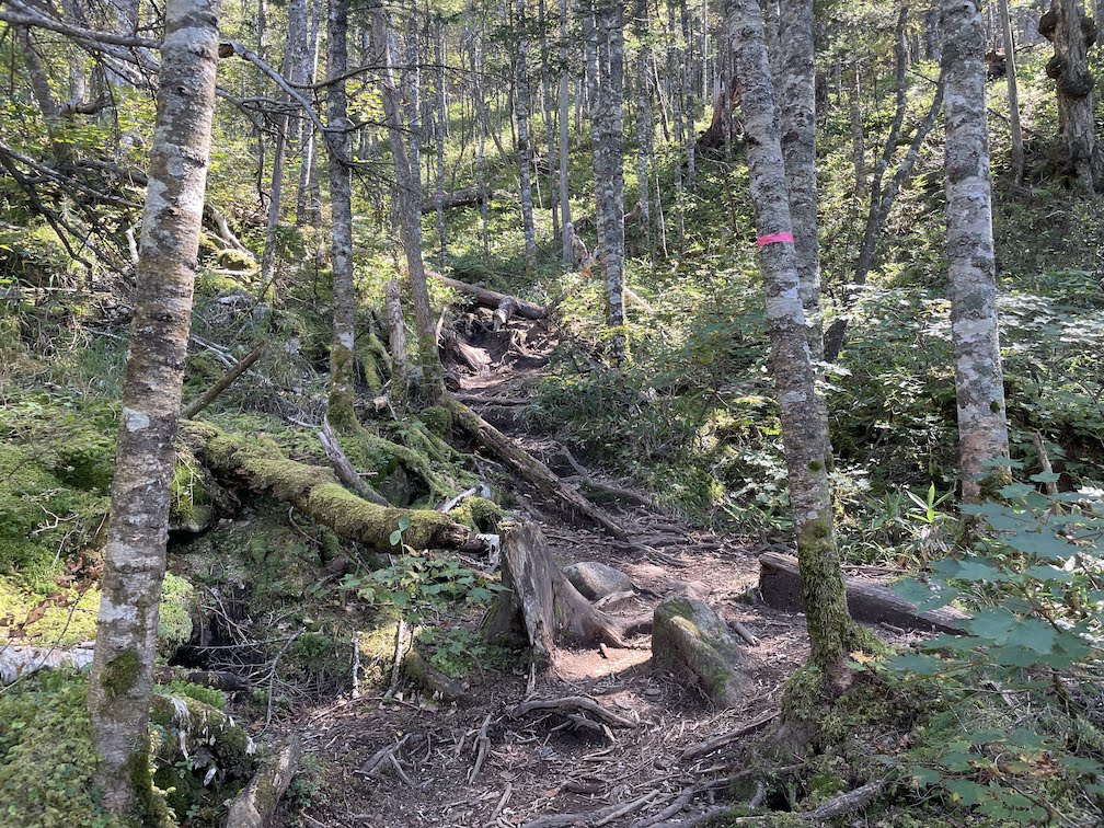 Der Higashi-nupukaushi-nupuri liegt dabei ein wenig im Schatten seines groesseren und bekannteren Nachbarns, dem Hakuun-zan (ein Hokkaido 100 Berg). Dass er weniger bekannt ist liegt sicherlich daran, dass die Sicht vom Gipfel weitaus weniger beeindruckend ist als die seines Nachbarns. Allerdings muss ich sagen, dass ich den Aufstieg durch den dichten Wald und die sehr angenehme Zeit zum Besteigen von ca. 1h bis zum Gipfel sehr positiv fand. Der Parkplatz zum Eingang des Wanderweges liegt direkt an einer Strasse die zum Shikaribetsu-ko fuehrt, am sogenannten Shirakaba-Pass 白樺峠 (dt. “Pass der Japanischen Weissbirke”). Dort befindet sich auch eine Bushaltestelle, allerdings sollte man im Vorfeld die Zeiten studieren, da der Bus dort nicht so oft faehrt. Fuer alle die mit dem Auto anreisen gibt es links und rechts von der Strasse genug Platz fuer geschaetzte 20-30 Autos.