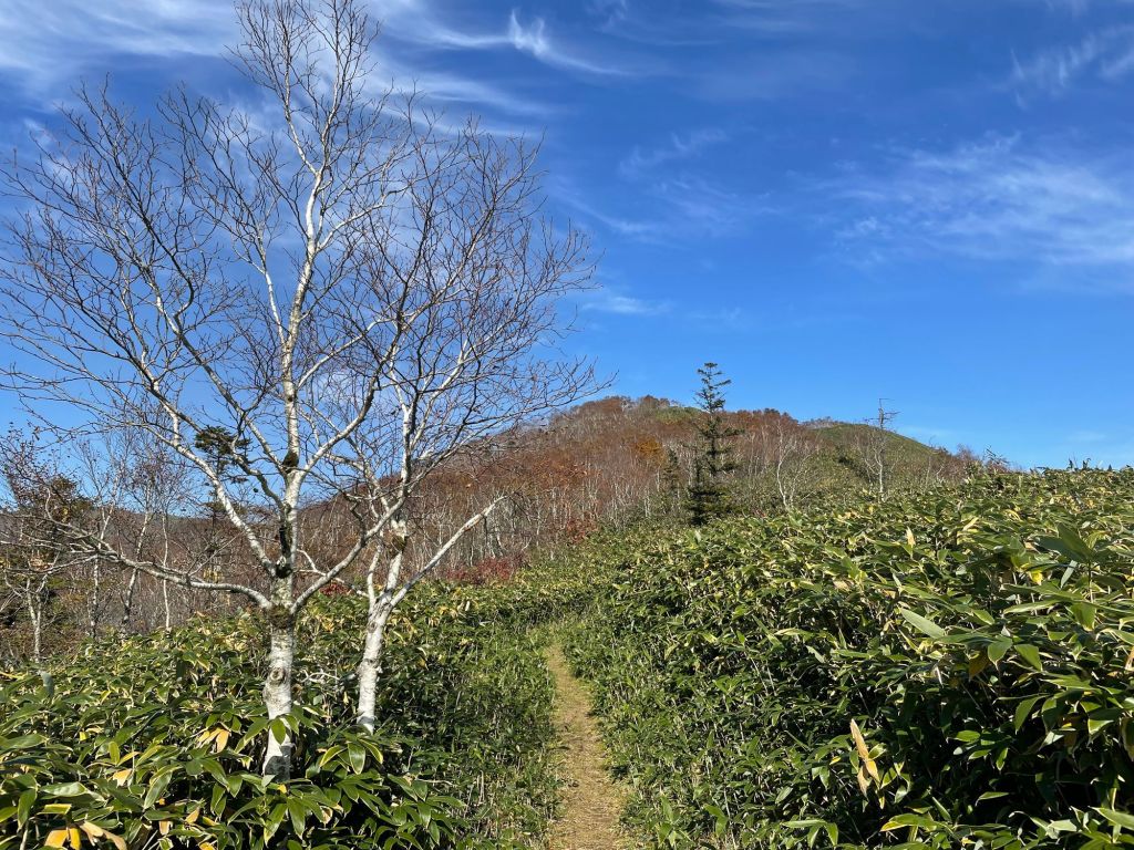Der Berg laesst sich von 2 Seiten her besteigen. Die eine Moeglichkeit geht ueber die Seite der Skipiste. Der andere Startpunkt 登山口 befindet sich auf dem Karikachi Pass 狩勝峠 entlang der Bergstrasse, die Minami-Furano 南富良野 und die Tokachi Ebene verbindet. Ich begann die Wanderung am Karikachi Pass, welcher einen relativ grossen Parkplatz hat. Dort gibt es auch Toiletten sowie Getraenkeautomaten. Der Eingang zum Wanderweg befindet sich rechts neben dem Verkaufshaus direkt an der Strasse. Von dort geht es erst einmal ca. anderthalb Stunden relativ gemuetlich bis auf den Sakura-yama 桜山. Lediglich vor dem Sakura-yama wird der Weg etwas steiler. Die Pfade sind auch oft etwas schmal, was jedoch nicht allzu hinderlich ist. Auf halben Weg zum Sakura-yama gibt es eine weitere Spitze, die aber keinen Namen traegt. Der Gipfel des Sakura-yama ist relativ unscheinbar, bewachsen, und bietet keinerlei Aussicht.