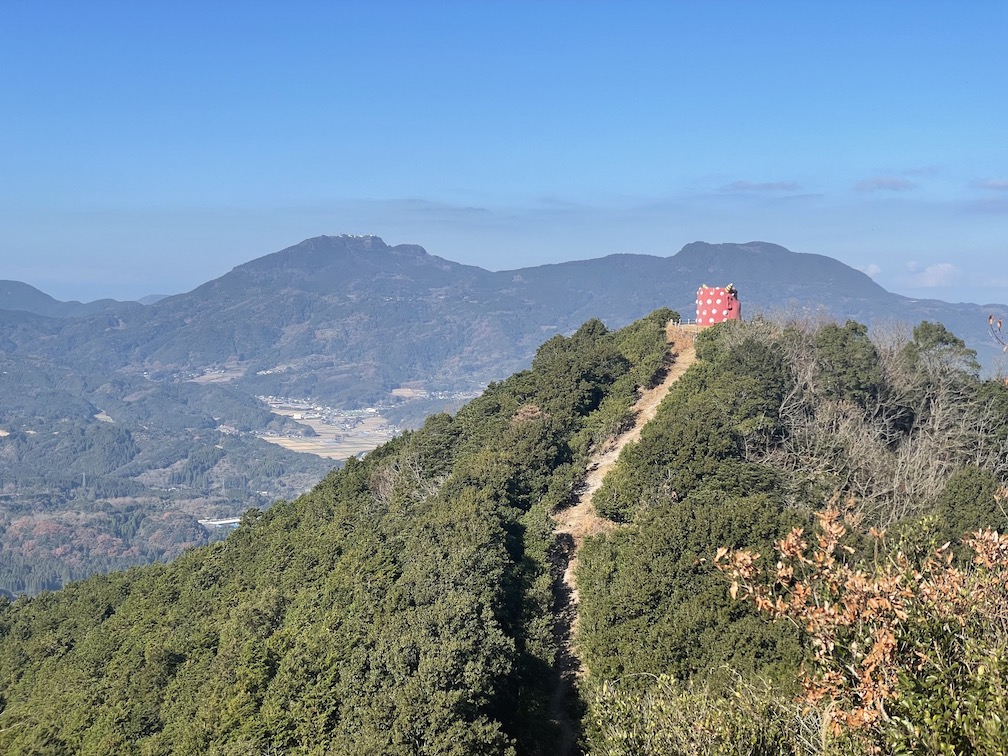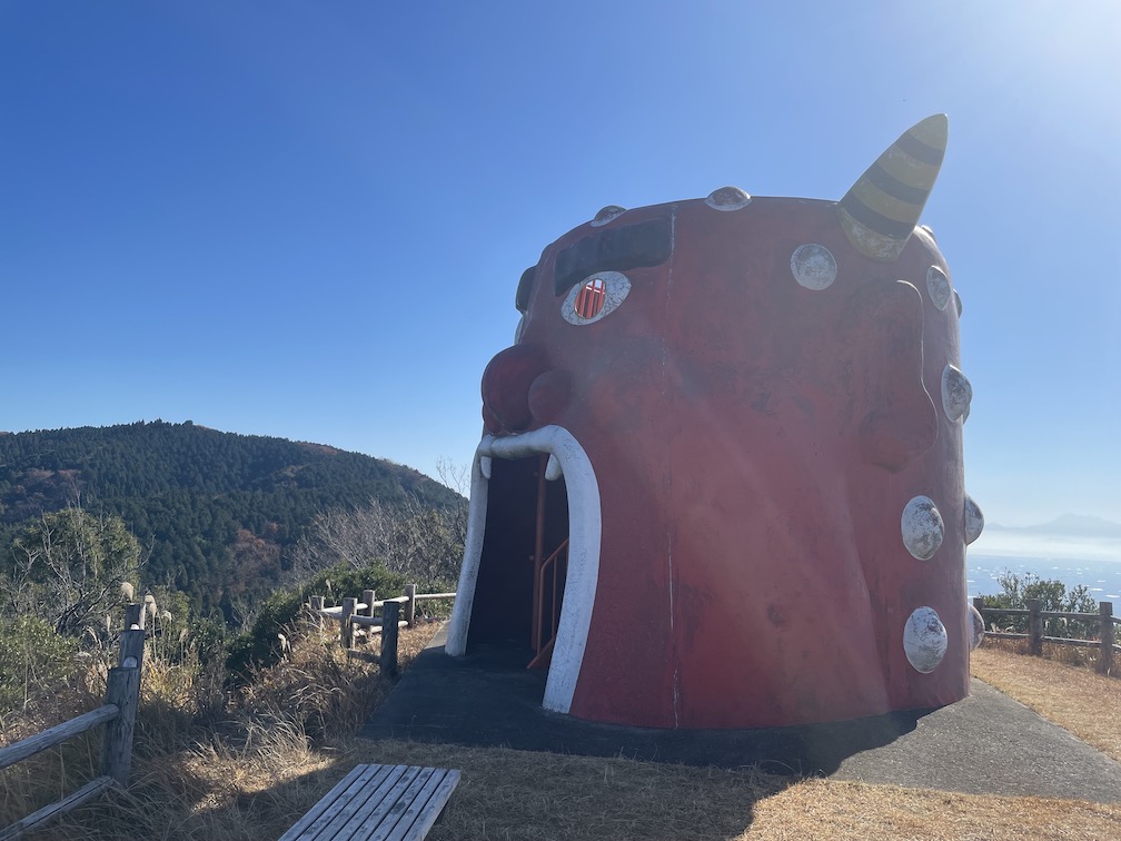 Oninohana-yama heisst uebersetzt die Nase des Teufels. Oni (Teufel) sind in der japanischen Folklore sehr oft vorhanden und anders als der Teufel im christlichen Gedanke, eher die behornten Wesen, die in der Natur leben. Oni sind durchaus nicht freundlich gesinnt, so gibt es jedes Jahr in Japan das Osetsubun お節分 Fest, bei denen Bohnen geschmissen und eine Ehomaki 恵方巻 (eine Art lange Sushi-Rolle) in eine bestimmte Himmelsrichtung gegessen wird, da man glaubt, dass dies die boesen Geister (Oni) vertreibe. Gleichzeitig werden die Oni aber auch oft verniedlicht dargestellt, und so ist es kein Wunder, wenn auf dem Berg, welcher woertlich “Die Nase des Teufels (Oni)” heisst eine grosse Aussichtsplatform in Form eines Oni Kopfes (inklusive der Hoerner)auf dem Gipfel des Berges errichtet wurde. Von dieser Aussichtsplatform hat man wirklich guten Blick auf das Umland und man sieht den Teufelskopf schon von weitem von der Ridgeline. Moechte man wieder zurueck ueber den Hijiri-dake, so kann man den Rundweg hinter dem Berg langlaufen, der weniger huegelig ist, sonders relativ seicht wieder nach unten zum Parkplatz fuehrt.