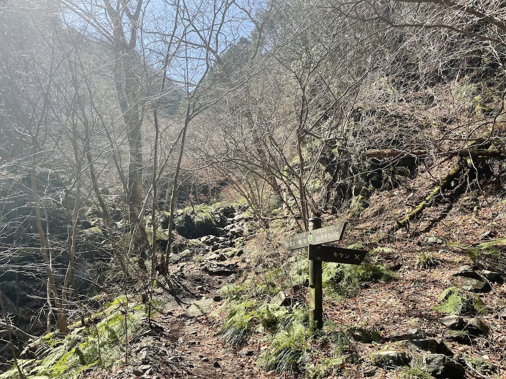 Der Weg ist zunaechst relativ gemaessigt durch ein Wald. Etwas schwieriger wird es wenn man an eine Stelle kommt an der, umgeben von grossen Felsen, man durch diese Schlucht an einem Fluss sich hocharbeiten muss. Auf dieser Route (mit dem Namen Shirotani-zawa Route 白谷沢登山口) ist dies die einzig anspruchsvolle Strecke, welche jedoch mit vielen Seilen ausgestattet ist, und so sollte dieses relativ kurze Stueck selbst fuer Anfanger machbar sein. Da es an einem Fluss hoch geht sollte man festes Schuhwerk tragen, da es auf den Steinen leicht rutschig werden kann. Ist dieser Teil ueberstanden, kommt man irgendwann auf eine Strassenkreuzung, von der es dann nicht mehr Weit bis zum Gipfel ist.