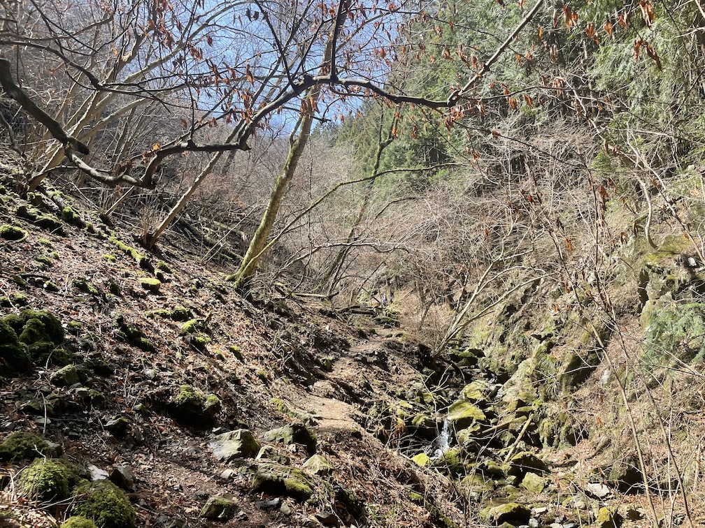 Der Gipfel ist sehr gross und breit, und bietet Baenke, Tische, und sogar einen Pavillon. Weiterhin steht dort auch ein grosser Kirschbluetenbaum 山桜, welcher jedoch erst im April bluehen duerfte, aufgrund der hoeheren Lage (als wir Ende Maerz oben waren, gab es noch keine einzige Bluete). Auf der gleichen Ridgeline gibt es noch einen anderen Berg, der nicht allzu weit weg ist, den Kuro-yama 黒山. Sollte man noch etwas Zeit haben, wuerde ich empfehlen diesen auch noch mitzunehmen. Den Abstieg schliesslich kann man via einer Parallelroute von der Aufstiegsroute machen, und muss somit nicht mehr bei der Felsenschlucht vorbei, man kommt aber so trotzdem am Ende wieder an dem Parkplatz an, wo der Bus haelt. Busse zurueck nach Hannou fahren ca. alle 30 Minuten, man sollte vorher auf jeden Fall den Plan anschauen.
