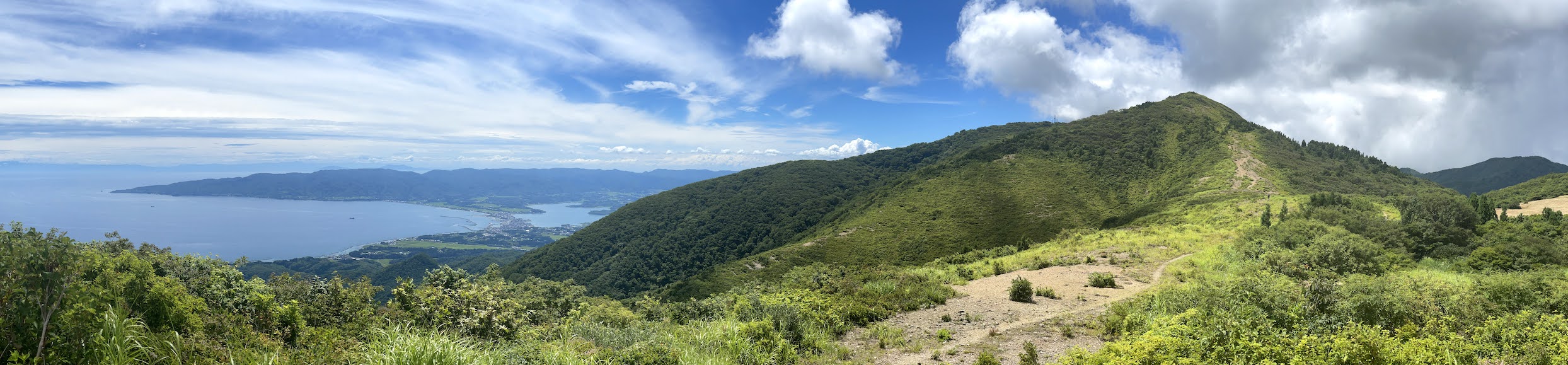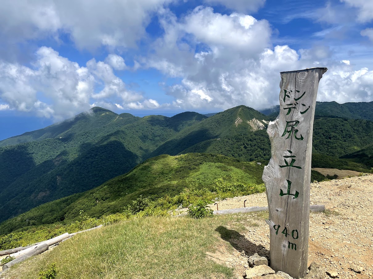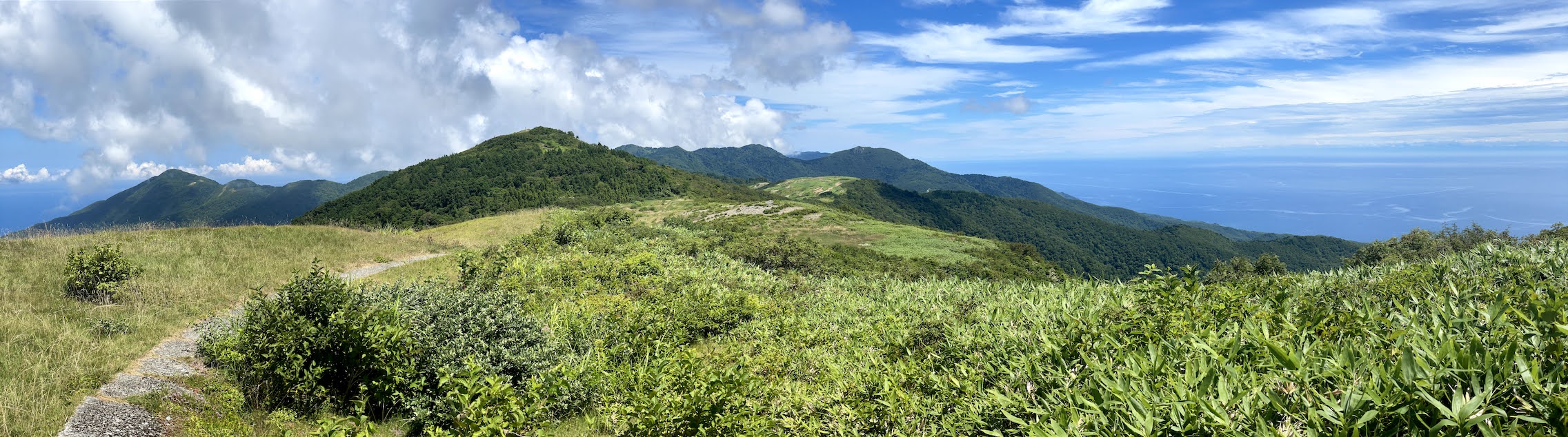 Oben angekommen ist es dann nur noch ne knappe Stunde bis zum Gipfel des Moritoshi-san. Schnell durchbricht man auch die Baumgrenze und hat auch schnell nur noch Straeucher links und rechts des Weges, bis es dann immer freier wird und man den Gipfel des Moriyoshi-san bereits sieht. Auf halber Strecke gibt es den Gipfel des Ishimori 石森, auf dem man eine kurze Rast einlegen kann. Begibt man sich weiter in Richtung Gipfel, dann kommt man irgendwann an einer Berghuette vorbei, von der es dann nicht mehr weit ist. Da der Berg relativ einfach zu erreichen ist, gibt es viele Leute allen Alters, die auf der Hochebe wandern. An dem verlaengertem Wochenende wo ich dort war, gab es sogar so viele dass es sich kurz vor dem Gipfel sogar ein wenig gestaut hat. Zum Glueck ist der Gipfel relativ weitflaechig, so dass man dort genug Platz hat. Oben angekommen wartet eine wunderbare 360 Grad Aussucht auf die Berge von Akita und an guten Tagen kann man bis nach Iwate schauen.