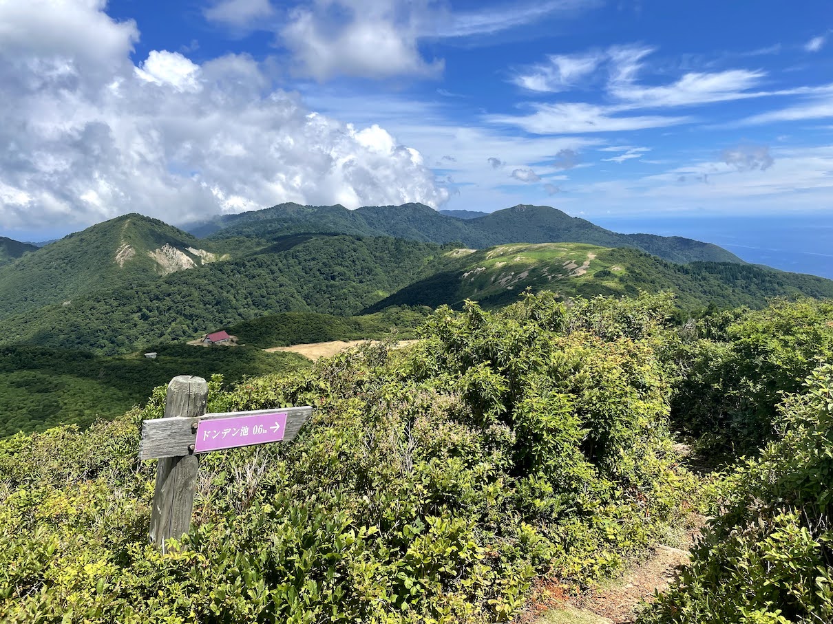 Die Anfahrt fuehrt ueber eine der wenigen Bergstrassen hoch zur Donden Hochland Lodge 佐渡・高原リゾート ドンデン高原ロッジ, welche nur etwa 100m unter dem Hochland liegt. Von dort aus startet der Hiking trail. Donden-yama ist zwar nicht ausgeschildert, aber dafuer Shiritate-yama尻立山 sowie der Donden Teich ドンデン池. Folgt man dem Pfad, kommt man schon nach 15 Minuten oben auf das Hochland und nach weiteren 20 Minuten schon auf den Shiritate-yama, von dem es sehr schoene Aussichten auf das Hcohland gibt. Danach muss man ein wenig absteigen (Achtung Rutschgefahr durch viele Kieselsteine!) damit man zum Donden Teich kommt. Im Hintergrund kann man auch die Donden Emergency Hut sehen.