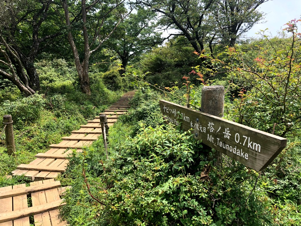 Eingang zum Asamakakushi-yama Trailhead. Auf dem Schild steht dass man 90 Minuten braucht aber wir waren schon in gut einer Stunde oben.Wald.Wegweiser zum Asamakakushi-yama.Steiler Weg nach oben.Blick auf den Asama-yama 浅間山Weg zum Gipfel.Gipfel des Asamakakushi-yamaGipfel des Asamakakushi-yama.