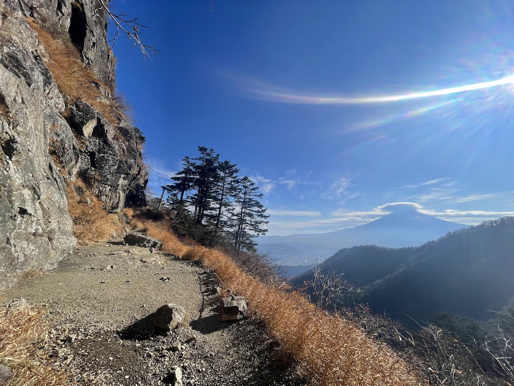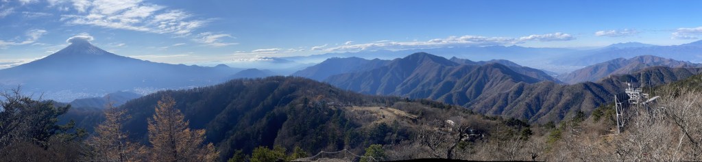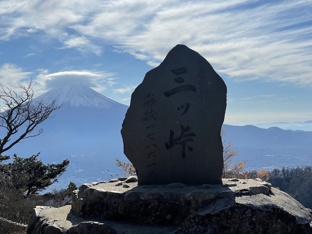 Zurueck zum Mitsutoge-yama. Der Berg besteht, wie der Name bereits sagt, aus 3 Bergpaessen (jp. Touge 峠). Dementsprechend findet man auch multiple Spitzen vor, namentlich Kinashi-yama 木無山, Kaiun-zan 開運山, Osutaka-yama 御巣鷹山 heissen, welche fast alle mit Funktuermen ausgestattet sind, wohl wegen der guten Lage und der Altitude ueber 1700m. Der hoechste der drei Spitzen ist der Kaiun-zan und zugleich auch ein beliebter Fuji Photospot. Zwischen den Spitzen gibt es auch eine kleine Berghuette “Shiki no Rakuen” 四季楽園, in der man Essen und Trinken bekommt. Weiterhin sind die Felsenwaende unterhalb des Kaiun-zan beliebt als Kletterfelsen. Alles in allem ist der Hike zum Mitsutoge-yama sehr zu empfehlen, egal fuer welcher Route man sich entscheidet. An einem sehr sonnigen Novembersonntag, als ich dort unterwegs war, blieb es auch relativ leer auf dem Gipfel. Ich sah maximal 6 Leute gleichzeitig oben, was mir fuer ein solch beliebten Berg in Japan als aeusserst wenig erscheint.