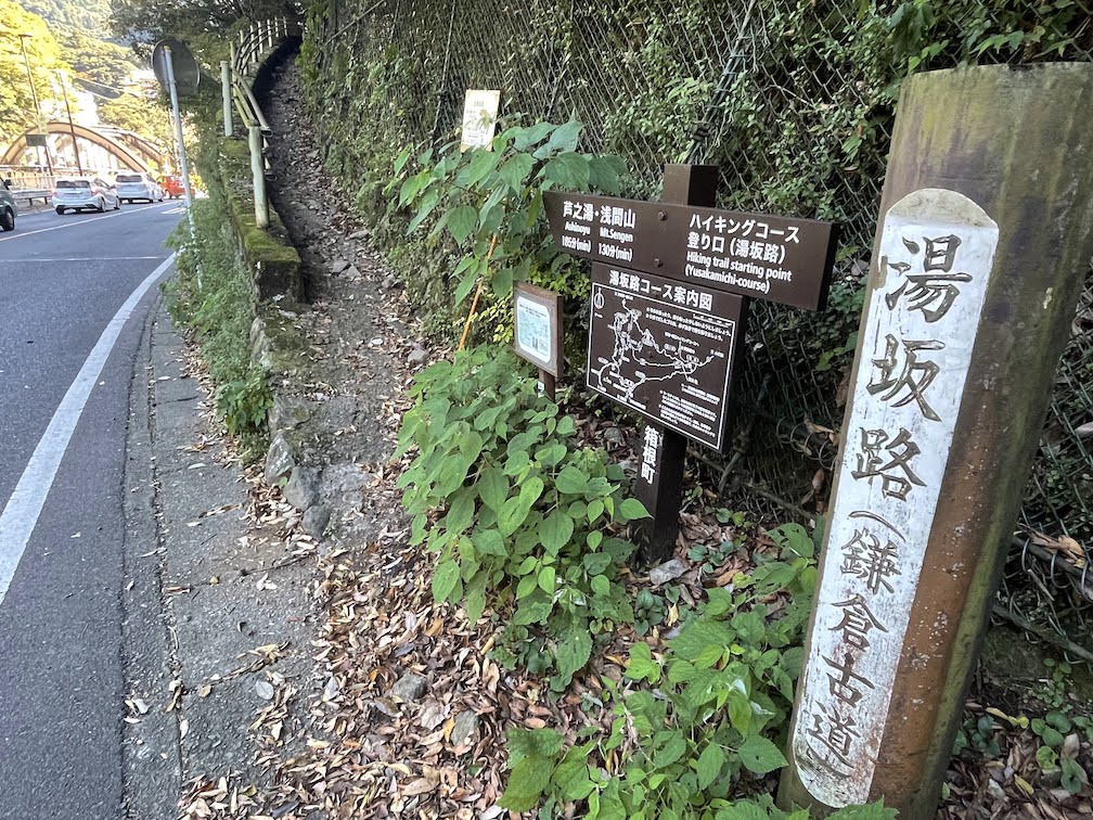 Nun gut, kurz auf die Karte geschaut, parkte ich beim Azalea Garten つつじ公園 am Fuße des Vulkans. Von diesem Parkplatz muss man die 300m zum Parkplatz am Krater auf Asphalt-Serpentinen hochlaufen. Da die Straße eh für den Verkehr gesperrt ist, hat man die komplette Straße für sich und muss sich halt nur mit dem Asphalt abfinden (was eher dann beim Hinunterlaufen nervt). Auf der Ebene des Parkplatzes angekommen, erblickt man auf der linken Seite bereits den sehr schön kegelförmigen 海向山 Kaiko-yama (dtsch. “Dem Meer zugewendeter Berg”?), welchen man auch mit der Wanderung auf den E-san verbinden kann, was ungefähr 2h länger dauert. Da ich am gleichen Tag wieder zurück nach Tokyo fliegen musste, entschied ich mich, nur den E-san zu besteigen.